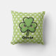This personalized kawaii shamrock throw pillow features a cheerful, three-leaf clover with a sweet, blushing face and large, sparkling eyes. With its thick, bold black outlines and vibrant green shading