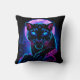 Uma renderização digital de um Pantera Negra Cibernético cercado por luzes neon futuristas. A lua cor-de-rosa e o intrincado circuito transmitem uma mistura única de natureza, tecnologia e surrealismo em um estilo mesmerizador.