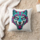 Almofada Cyberpunk Neon Wolf - Synthwave Robotic Animal