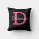 D cor-de-rosa-quente com fêmur monograma com nome no travesseiro de sotaque preto para um quarto, sala de estar ou sala de jogos. Personalize este travesseiro decorativo exclusivo com uma pessoa que lhe dê o nome de fazer de um presente de graduação de excelente para aquele estudante que vai para a faculdade ou Universidade. Uma criança adoraria seu próprio travesseiro monograma para o quarto ou sala de jogos.