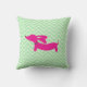 Playful green chevron pillow featuring a bold pink adorable wiener dog design for a look that’s both playful and polished. The rich green tones add a fresh, contemporary vibe while the dachshund detail keeps it unmistakably fun.