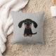 Um adorável cachorro preto e bronzeado de Dachshund olhando para cima. Disponível em variadas opções de cores, este travesseiro bonito do amante Doxie adiciona um sotaque decorativo divertido ao seu sofá ou cama. Faz um presente bem pensado para alguém que ama o Wiener Dogs. Visite o Doodle World de Jenn para ver mais a decoração doméstica dos amantes de cachorros apresentando este desenho animado de cachorro e muitos mais desenhos originais de raça canina.