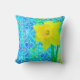 Este travesseiro decorativo lança uma colagem digital composta por várias camadas de pinturas, texturas e digitalizações. O ensolarado daffodil "pop" do fundo azul.