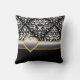 Damasco branco preto com banda de cinza prateada e travesseiro cardíaca MoJo americano Lança/Largura/Sotaque, apresentando uma elegante e elegante cor damasco branca preta com uma banda gradiente de cinza prateada moderna e coração com contorno de ouro. Tendência, moda e contemporânea, mas clássica ao mesmo tempo, com um toque de vintage/retrô.