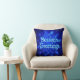 Um tema invernal com um enxame de flocos de neve fractais azuis. O texto "Season's Greetings" aparece em azul e branco brilhante. Adicione seu próprio texto adicional no verso.