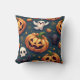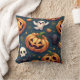 Almofada interior padrão com abóbora e crânio de morcego fantasma