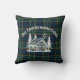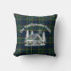 Traga aconchego de cabine para o seu sofá ou cama com esta almofada de lançamento personalizada. Com uma cabine de toras desenhada à mão com pinheiros e brilho solar sobre xadrez clássico verde e azul, é uma peça decorativa encantadora para um lodge rústico, refúgio na montanha ou casa na floresta. Personalize com o nome da sua família para um presente perfeito e aconchegante ou um acessório elegante.