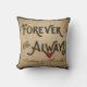 Travesseiro bonito e rústico do estilo de serapilheira com Forever e sempre e um coração vermelho original. A serapilheira é um teste padrão impresso no tecido assim que é muito macia. Aperfeiçoe para o noivo wedding da noiva dos casais. Pessoas dos presentes do aniversário no amor igualmente disponível no fundo branco