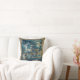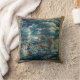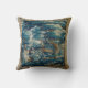 Uma almofada com design de tapeçaria vintage em tons de azul.