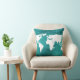 Almofada décor do mapa mundial da turquesa