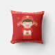 Um travesseiro com uns desenhos animados de um menino bonito vestiu-se em um traje chinês brilhante tradicional do noivo do vermelho e do ouro completo com a parte principal. A beira é um teste padrão feito usando os caráteres chineses. Significa a felicidade dobro que é usada para a felicidade marital. Este travesseiro decorativo vermelho brilhante faz-lhe uma peça central decorativa perfeita para casamentos ou um presente para weds recentemente em casa. O vermelho e o ouro são cores auspiciosos na cultura chinesa. Combine-a com a versão da noiva do travesseiro.