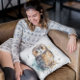 Adicione um toque de charme aconchegante da floresta à sua casa com esta almofada macia e de alta qualidade. O design apresenta uma adorável coruja de olhos arregalados em suaves tons de aquarela, trazendo uma energia quente e caprichosa para qualquer sofá, poltrona ou cama. Sua expressão doce e os acentos em tons terrosos de azul-água fazem dela uma peça que se destaca, sentindo-se ao mesmo tempo artesanal e estilizada profissionalmente.