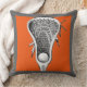 Travesseiro de jogador de lacrosse ou treinador com design de lax stick-and-ball em fundo laranja.