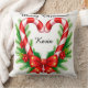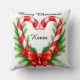 Uma composição vívida, com tema natalício, que inclui canas doces que formam uma forma cardíaca rodeada por vergreens, arcos vermelhos com acentos de ouro e bagas sagradas festivas.