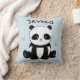 Cara bonito da panda com corações e as bolinhas azuis. Personalize o nome. Travesseiro personalizado doce da decoração do berçário com opção conhecida feita sob encomenda. Luz - fundo azul com bolinhas azuis. Trabalhos de arte pelo passeio de Valarie.