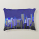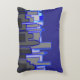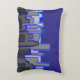 Abstract cityscape art in dark blues and grays on bold statement cushions.