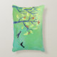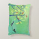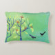Pintura de dois pássaros negros em um campo verde em primavera. Uma seiva entra em folha e se espalha com flores, e ao fundo estão algumas árvores na borda da floresta. Arte original de Nic Squirrell. Bonito decoração para amantes da natureza.
