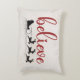 O travesseiro apresenta a palavra "acreditar" em uma fonte vermelha com script e inclui Papais noeis com seu trenó e rena na silhueta preta e poeira de píxias brancas embaixo.