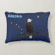 Uma águia careca varreu o céu de sua perca em um galho de árvore; sobreposto a uma bandeira do Alasca. A leitura de texto "Alaska" também aparece em azul e branco brilhantes. Adicione texto adicional no verso.