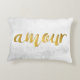 Texto "Amour" em Shimmering Gold Foil Typografia contra um travesseiro home-decor de design, com textura vírgula e moderna tendência de fundo. Amo presente para aquele aniversário especial, dia de os namorados, aniversário de casamento...Sempre que precisar expressar sua "amour" por ela ou mesmo por ele.