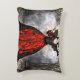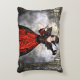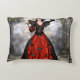 Renderização digital em 3D de um belo feiticeiro feminino em um vestido vermelho e preto com asas em um fundo de castelo fantasticamente assustador