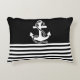 O travesseiro decorativo Na moda apresenta faixas náuticas, pretas e brancas, com uma ilustração do vetor de âncora branca sobre um fundo preto, para que você possa mudar facilmente a cor. Itens correspondentes disponíveis em nossa loja. www.zazzle.com/giftsforanyoccasions*