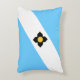 Travesseiro com bandeira da cidade de Madison, Wisconsin; bandeira azul clara e branca com círculo preto e amarelo no centro