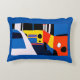 Travesseiro de destaque numa ilustração retrormoderna de ônibus e carros em cores primárias brilhantes - excelente para o quarto de uma criança
