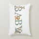 Este travesseiro personalizado para berçário de bebê apresenta um tema neutro em cor verde-musgo com ilustrações de adoráveis animaizinhos de pelúcia. A palavra "BEBÊ" é impressa em letras maiúsculas na parte superior. Os animaizinhos de pelúcia acentuam a letra. Um ursinho de pelúcia e um rato são colocados à esquerda, com um filhote de leão no centro. Um elefante bebê e um pato são colocados à direita.