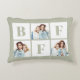 Give your bestie a gift she'll cherish. This photo collage accent pillow features three square photos, along with the chunky sage green letters "BFF" in alternating white squares on a sage green background.