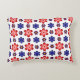 This accent throw pillow features a beautiful colorful floral pattern of blue, purple and red stylized daisies against a white background; perfect for adding a touch of retro cuteness to your home.