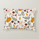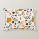 Uma arte popular inspirou um padrão de abóboras de dois tons, romãs, peras, cogumelos, folhas e bagas vermelhas.