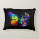 Arco-íris, borboleta monarca luminosa, pintada artisticamente com buquê de rosas iridescentes, brilhantes e luminescentes sobre fundo preto. Borboleta-arco-íris.