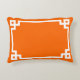Travesseiro de destaque retangular geométrico retangular de cor laranja vívida e vírgerina branca com estilo chave grega. Personalize este fundo de cores sólidas e o gráfico de motivos escolhendo as cores favoritas ou combinando o decorador doméstico. Temos outras fronteiras gregas Key para outros produtos moldados. Envie um pedido se precisar de outro presente.