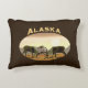 Dois touros de renas lutam durante a corrida de outono no extremo norte enquanto o sol se põe no fundo. A leitura de texto "Alaska" também é exibida. Adicione o seu próprio texto adicional no verso.