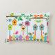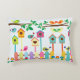 Travesseiro de crianças divertidas cheio de amostras de casas de pássaros cheias de cor, flores de margarida e pássaros na vizinhança. Divertido de olhar e uma forma excelente de apresentar e ensinar cores às crianças.