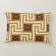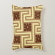 Art Deco Chave grega ou padrão labiríntico travesseiro de destaque no bronzeado de camelo quente e manteiga macia amarela acentuado com chocolate escuro marrom