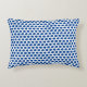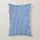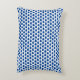 A imagem apresenta um travesseiro retangular com um padrão azul e branco que se destaca devido ao alto contraste e ao design repetitivo. Esse padrão dá ao travesseiro uma aparência moderna e na moda, fazer um acessório versátil que poderia complementar vários estilos de decoração.