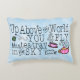 A citação deste bonito, branco travesseiro decorativo retangular para o leitor ávido vem de um poema Lewis Carroll em seu livro, "Alice no País das Maravilhas." O Mad Hatter o recita na festa do chá: Por cima do mundo voa, como uma bandeja de chá no céu. O design de tipografia do rico apresenta um chá, um bule de chá e um saco de chá, completos com vapor giratório - todos flutuando sobre um fundo azul claro e turvo.