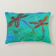 Lindas libélulas multicoloridas dançam sobre um fundo turquesa malhado.