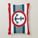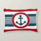 Design náutico com a decoração da âncora na forma redonda no fundo listrado do azul, o vermelho e o branco