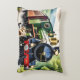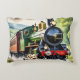 A nostalgic scene of a dog greeting the arrival of a green steam train.
