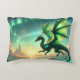 Um dragão verde majestoso voa através de um céu místico, cheio de nuvens, deixando um rastro de luz brilhante.