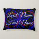 Este travesseiro de sotaque geométrico "What If" é uma paródia nos nossos nomes e mostra uma possibilidade alternativo de como o nosso nome poderia parecer com algumas pequenas mudanças. Este produto apresenta a personalização do texto do lado frontal, do primeiro e do sobrenome. Na parte traseira do travesseiro, troque a primeira letra ou casal de letras da sua frente e sobrenomes para criar o alternativo interessante. Aproveite esta design de tema geométrico com dupla acento vermelho de cor azul. Combine com os travesseiros em série e redondos para completar o conjunto.