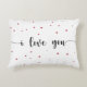 Este travesseiro de sotaque apresenta um design encantador com a frase 'Eu te amo', escrita elegantemente em uma letra na moda preto no centro. O fundo branco é enfeitado com um padrão espalhado de pequenos corações vermelhos, adicionando um toque de romance e calor ao design. Perfeito por expressar afeto, este travesseiro é uma peça decorativa ideal para qualquer espaço vivo, fazer-o de um presente pensativo para os entes queridos ou de uma bela adição à decoração da sua casa.