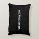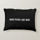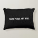 Faça a paz, não faça a guerra com o Travesseiro minimalista de sotaque preto e branco. Texto branco totalmente personalizável em ambos os lados do travesseiro sobre fundo preto de cor sólida. Todas as cores são editáveis.