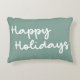 Este travesseiro de sotaque fofo simplesmente tem a frase Felizes Feriados em um script caprichoso, com letras cursivas em um fundo verde sábio.