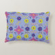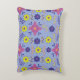 This pillow dances with sun-drenched hues: deep cobalt blue, burnt orange, fiery raspberry, and golden yellow, woven together on a periwinkle background, like a desert sunset.