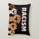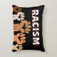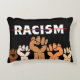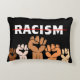 O travesseiro de sotaque da justiça social apresenta texto RACISMO redinrado com vários tom levantando punhos de protesto.