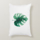 Design de travesseiro com sotaque moderno, apresentando originalmente uma folha de monstera verde de cor aquosa pintada manualmente.